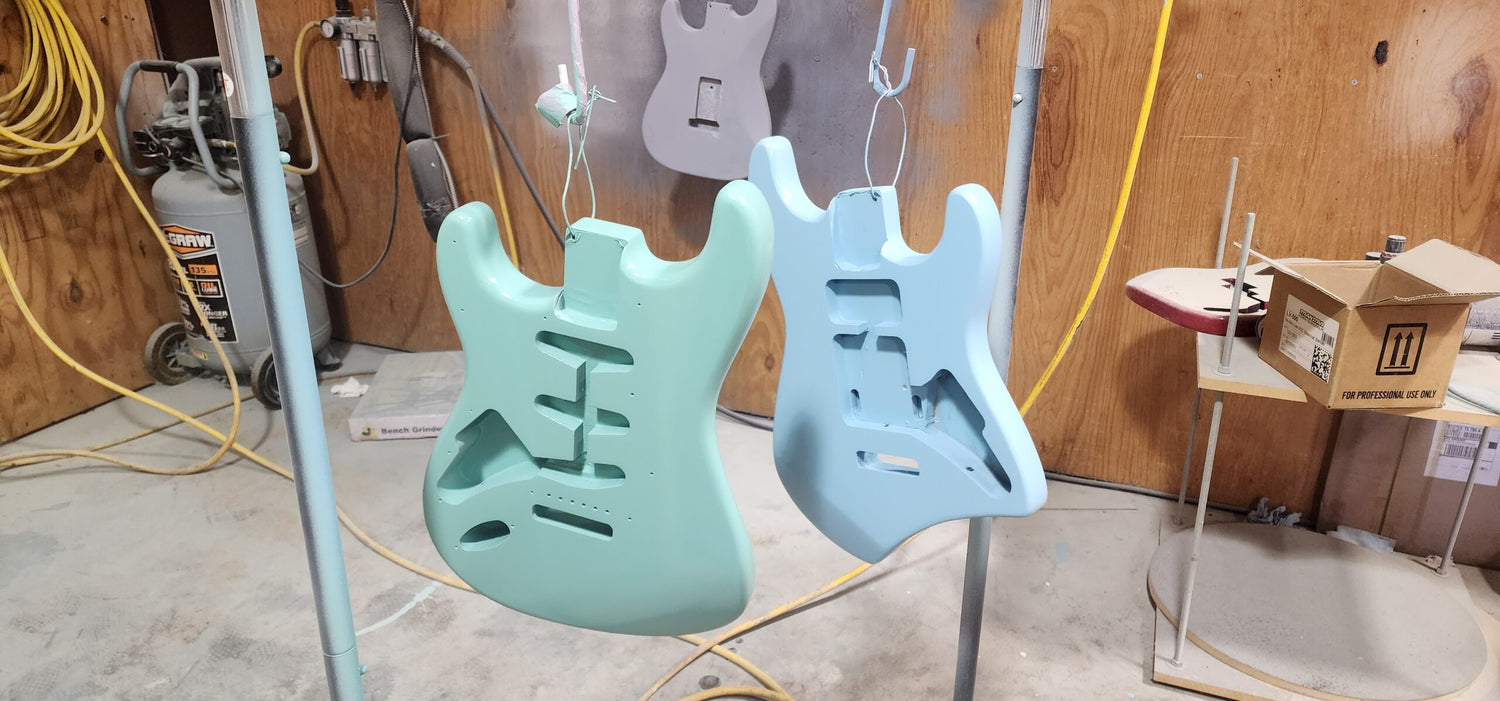 At Mythic Guitar Company in Austin, TX, we provide high-end custom paint and restoration services for electric and bass guitars. We use top-quality materials like instrument-grade stains, nitrocellulose lacquers, and Polyurethane auto paint, ensuring superior durability and finish. Though our services may cost more, the long-lasting results and craftsmanship are worth the investment. Let us help you choose the perfect finish to enhance your guitar's look and stage presence.
