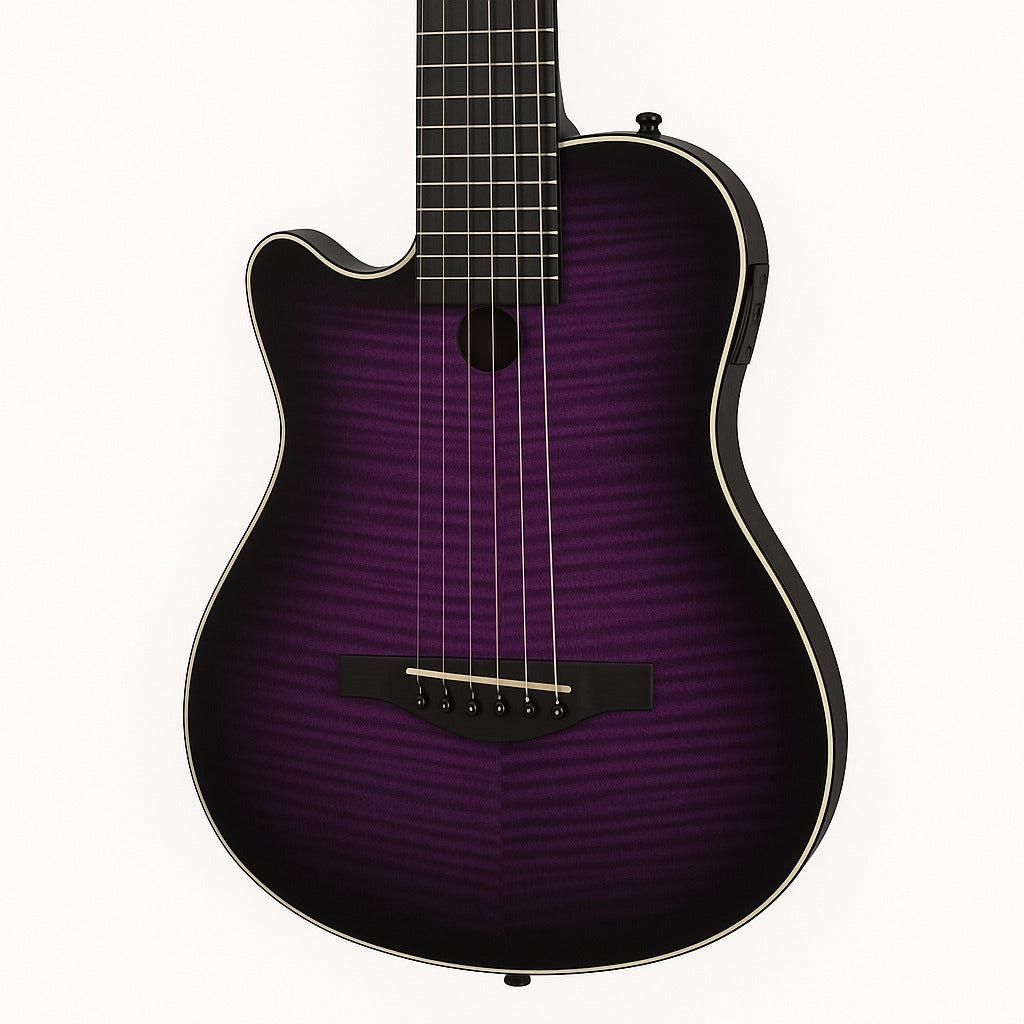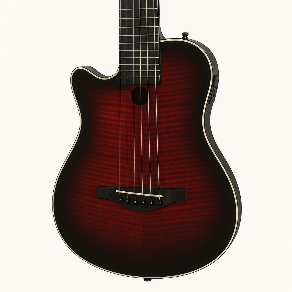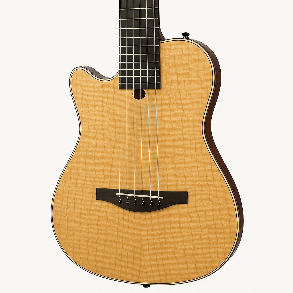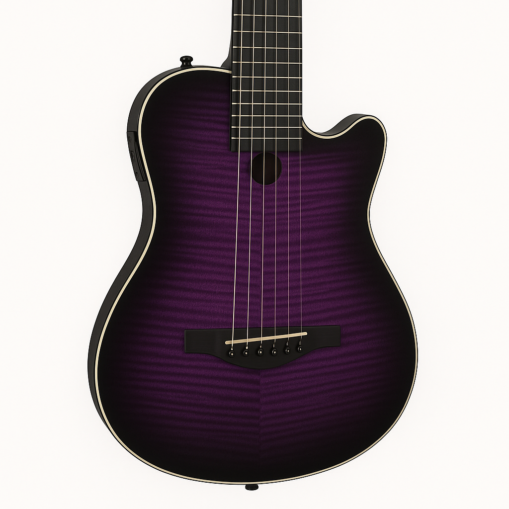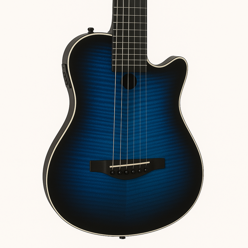 Choose your stage presence with a stunning quilted or flamed top in maple, walnut, or cedar, finished naturally or in rich bursts that accentuate every ripple of the wood. Beneath your fingertips, a silky ebony fingerboard on a resonant mahogany neck (25½″ scale, stainless-steel frets) delivers glassy trebles, warm mids, and tight lows.