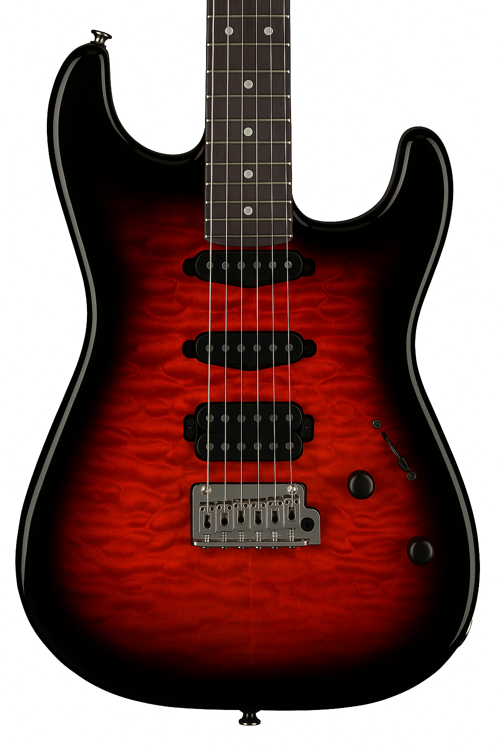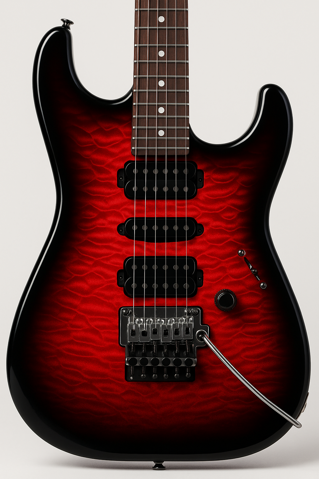 Blending Japanese‐built shred pedigree with high-end modern versatility, then making it in Austin, Texas, the Valkyrie takes its cues from a modern "super strat" platform and ramps it up with a full quilt-maple top and performance-driven electronics. A resonant alder body showcases a hand-rubbed oil–finished maple neck with graphite reinforcement and a lightning-fast 16" radius fingerboard (24 jumbo frets, rolled edges).